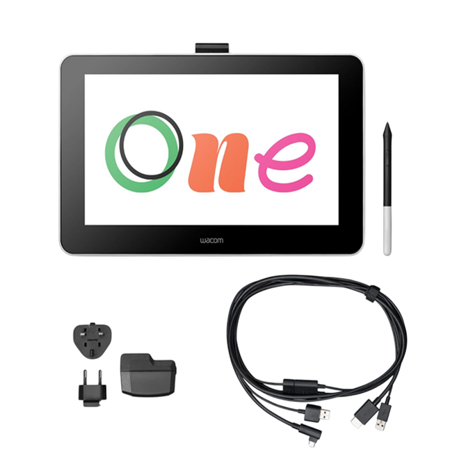 • Package included: Wacom One pen display, Wacom One pen, 3 replacement tips, X-shaped Wacom One cable, AC power supply (10W), AC power plug, quick start guide